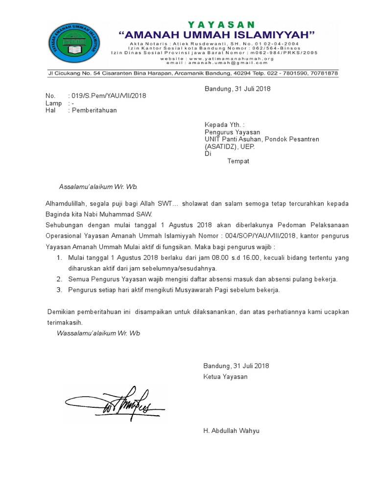 Contoh Kop Surat Yayasan Pondok Pesantren. Berikut adalah contoh surat pemberitahuan liburan santri pondok pesantren dalam format doc ms word yang bisa anda edit sesuai dengan kebutuhan sampean. Contoh Surat Pernyataan Binaan Pondok Pesantren.