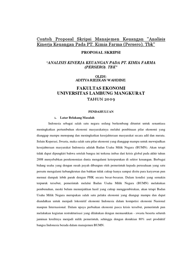 Contoh proposal skripsi manajemen keuangan perbankan. Latar Belakang Perkembangan perekonomian yang didukung oleh peningkatan komunikasi akan semakin meningkatkan upaya berbagai perusahaan untuk mengembangkan usahanya dan melakukan kegiatan dalam rangka meraih dana untuk ekspansi bisnis dengan berbagai cara agar investor mendapatkan. Analisis faktor-faktor yang mempengaruhi ketepatan waktu pelaporan keuangan pada perusahaan manufaktur yang terdaftar dibursa efek indonesia oleh. Saya menggunakan google drive.