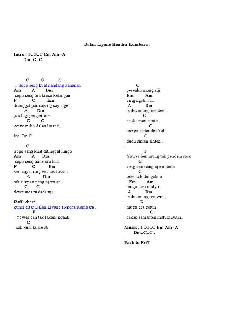 Chord Gitar Lirik Lagu Dalan Liyane Hendra Kumbara Lengkap Beserta Link Download Mp3 Tribunnews Com Mobile