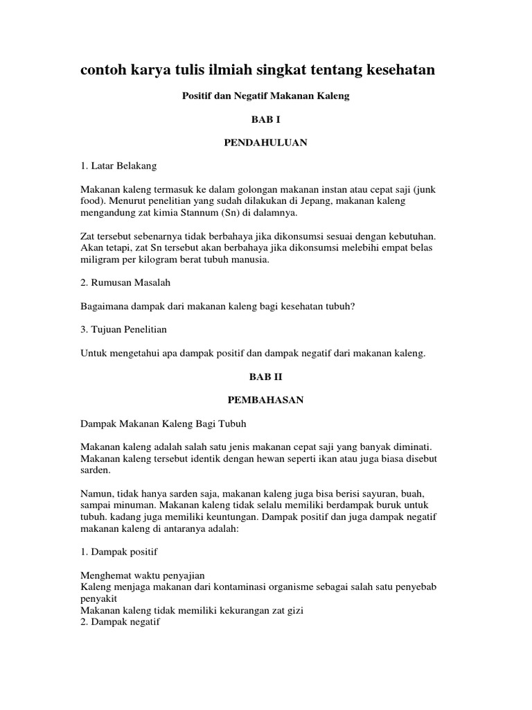 Contoh Karya Tulis Ilmiah Singkat Tentang Kesehatan